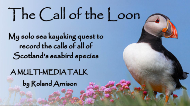 Join sea kayaker Roland Arnison for an evening of immersion into the world of seabirds and adventure sea kayaking as he recounts his tales from the Call of the Loon expedition – his solo quest to record the calls of all of Scotland’s seabird species, spending two summers exploring remote Hebridean islands by sea kayak.